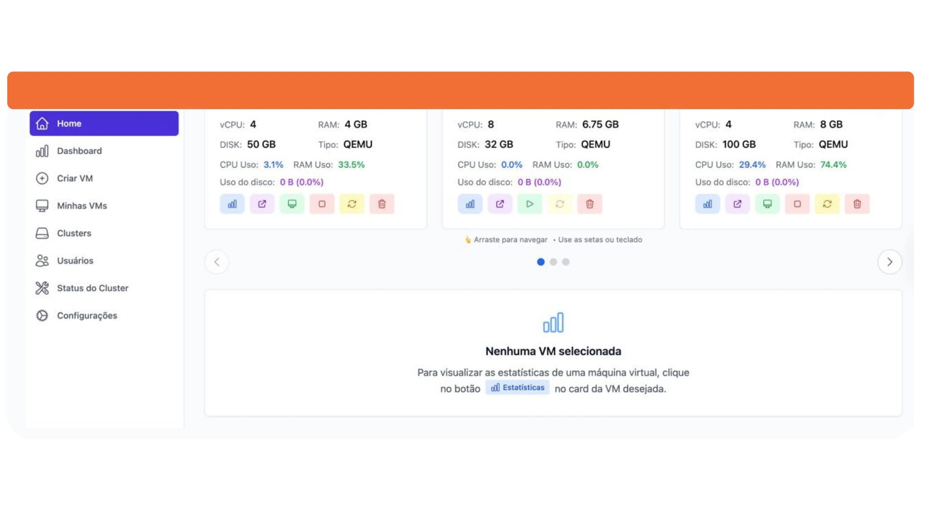 | Chamados frequentes por dúvidas simples | Cliente cria e gerencia suas VMs sozinho |
